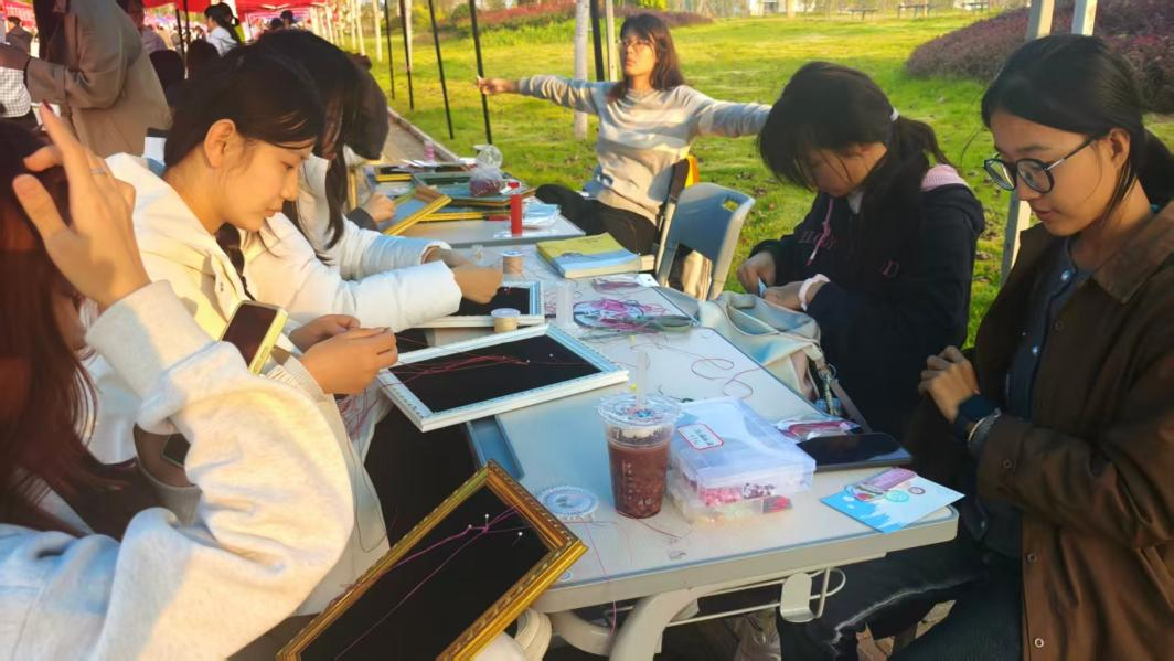 活动现场,社团不仅提供了丰富的DIY手工材料,还特别邀请指导老师王玉珍及公选课学员为参与同学提供“一对一”线下教学。同时,社团还配套发布了线上视频教程,构建起“线下实操+线上巩固”的全方位教学模式,帮助参与同学在动手实践中深入领略非遗绳结的独特魅力。