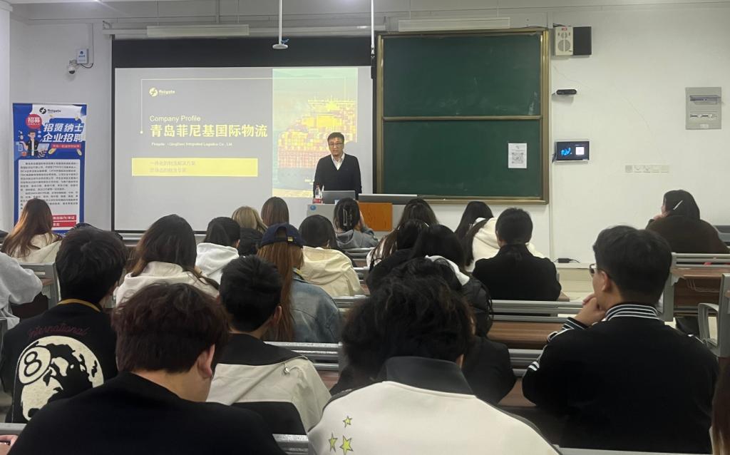 宣讲会上,菲尼基公司康总围绕企业概况、发展历程、企业文化及业务布局等方面作了系统介绍,并重点阐述了公司的核心竞争优势,强调通过构建“全流程一站式”服务体系,有效促进国内与国际业务协同发展。此外,在互动环节,康总针对毕业生们普遍关注的薪资结构、福利保障等问题进行了细致解答,并对有求职意向的同学进行了现场面试,现场交流气氛热烈融洽。