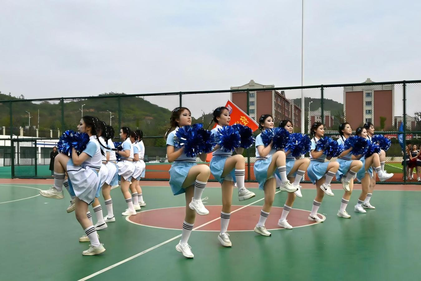 赛场上,经济与管理学院代表队队员们伴随着明快的节奏,舞动炫彩花球,通过整齐划一的队形变换和富有力量的托举动作,充分展现了经管学子昂扬向上的青春朝气与团结协作的集体精神。