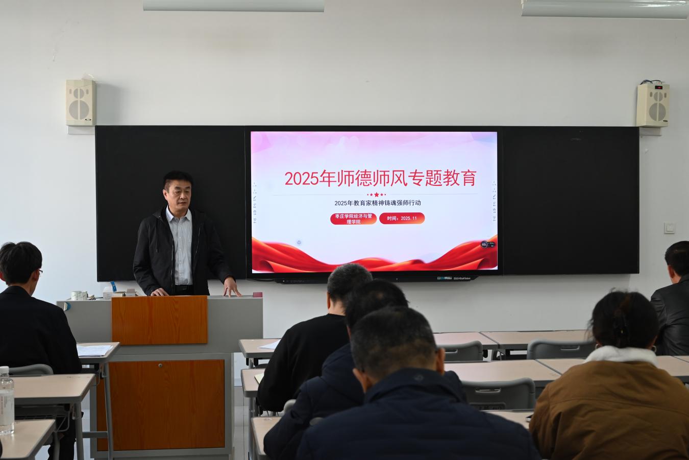 会议传达了《枣庄学院2025年“师德师风建设月”活动方案》,围绕“以教育家精神铸魂强师”主题,全体教师学习了《新时代高校教师职业行为十项准则》《中共枣庄学院委员会师德师风负面清单与失范行为处理办法》等文件,激励教师坚守育人初心,领悟教育的使命担当。随后,全体教师观看了师德警示教育片,引导教师以案为鉴、以案明纪。