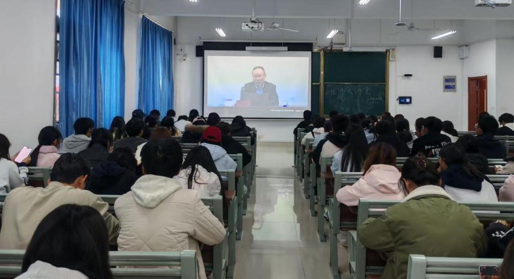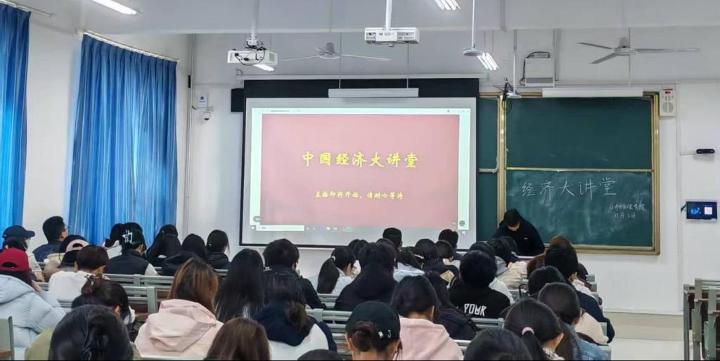 为深入学习贯彻党的二十大精神,进一步解读中国经济政策与实践,提升经济类人才自主培养质量,11月2日上午,经济与管理学院在崇德楼405教室组织观看了“中国经济大讲堂”第四讲线上直播,经济统计专业学生集中参加了此次学习活动。