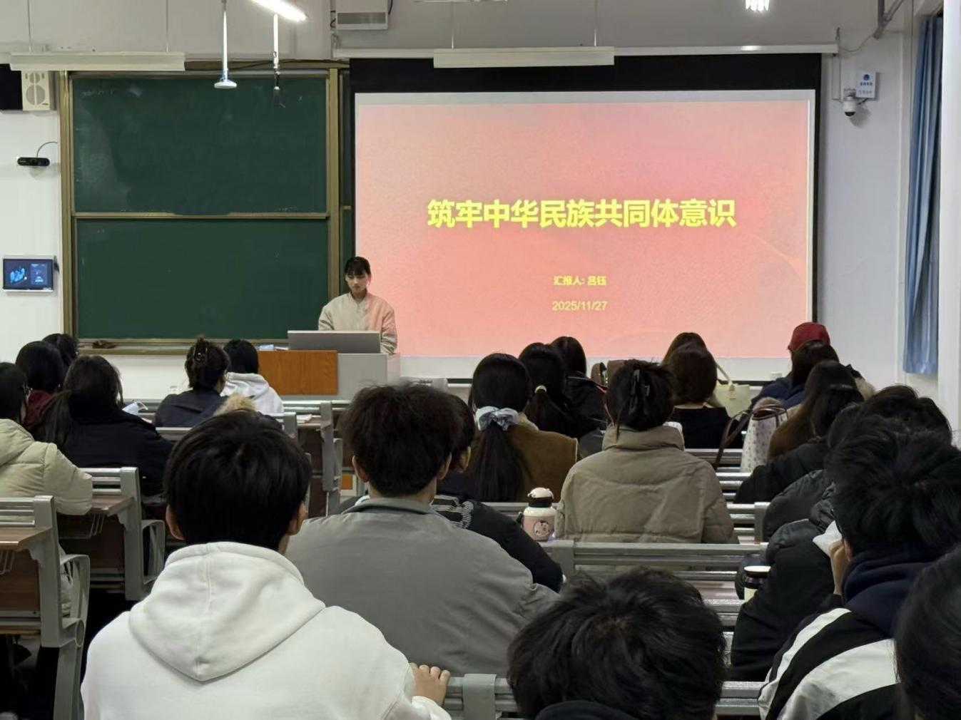 为深入学习贯彻习近平总书记关于加强和改进民族工作的重要思想,全面落实铸牢中华民族共同体意识这一主线要求,引导广大学生准确把握中华民族共同体意识的核心要义与实践指向,11月27日,经济与管理学院组织全院各班级集中开展了“铸牢中华民族共同体意识”主题班会。