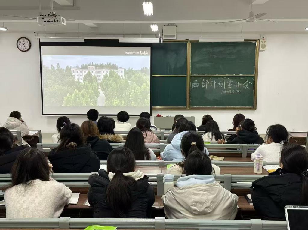 为进一步增强青年学生对国家西部发展战略的认识,弘扬“奉献、友爱、互助、进步”的志愿服务精神,12月18日,经济与管理学院在崇德楼509教室组织开展“青春向西行”西部计划专题观影活动,吸引我院众多有意向参与西部计划的学生到场参加。