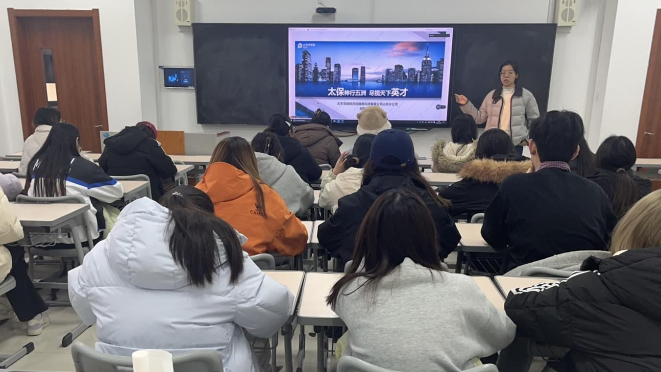 为搭建精准高效的校企对接平台,拓宽毕业生就业渠道,推动学生实现更高质量就业,12月19日下午,经济与管理学院在增信楼203教室举办太平洋保险在线服务科技有限公司山东分公司专场招聘宣讲会。本次活动采用“线上+线下”同步进行的方式,吸引了众多毕业生参与。